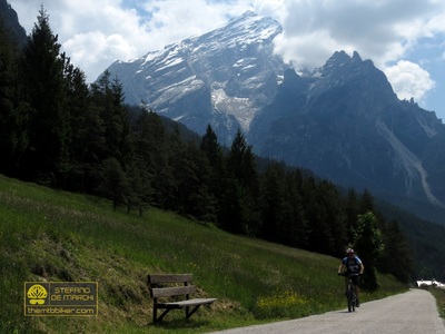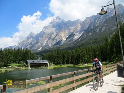 Si parte proprio da qui, con il piacevole nastro d’asfalto che in circa venti chilometri collega Valle di Cadore a San Vito passando per Venas, Peaio, Vodo e Borca: una salita dolce e impercettibile che si interrompe sotto le vette del Sorapiss quando, al giro di boa del percorso, un ripido sentiero conduce al fondovalle del Pian della Pausa. Dal vicino lago di Mosigo il tour diventa più vario con la presenza di tratti sterrati e saliscendi, qualche rampa impegnativa e alcuni piccoli guadi, fino a imboccare l’antica Strada Regia dopo l’abitato di Borca. Si tratta della vecchia strada romana che attraversava la valle, e che oggi – dopo una serie di interventi di ripristino - è percorribile abbastanza agevolmente anche in mountain bike: sempre ciclabile, segue sentieri e mulattiere dal fondo erboso che nei mesi più caldi tende a nascondere la traccia da seguire (ma che rimane comunque abbastanza intuitiva). Per un lungo tratto la Strada Regia affianca la vecchia ferrovia, immettendosi dopo Peaio sulla ciclabile già percorsa all’andata (e con la quale si può già tornare al punto di partenza). Dopo poche decine di metri si devia a destra scendendo nuovamente verso il fondovalle: un single track poco battuto e una frana da superare con cautela immettono quindi sulla provinciale per Cibiana. Il ponte sulla “Chiusa” (una stretta forra naturale in passato fortificata a fini difensivi) introduce ora alla salita per Cibiana: nota anche come “paese dei murales”, è uno dei borghi più interessanti del Cadore grazie alle storie e alle tradizioni raccontate con decine di affreschi disseminati tra le case e le viuzze del paese. L’itinerario prosegue sul sentiero delle miniere di Ronce (alcuni tratti a piedi, cinque minuti in totale) scendendo poi con decisione sulla carrareccia per il lago di Valle; dalla suggestiva diga di Pocroce un’ultima impennata risale fino a Valle di Cadore. Punto di partenza: Valle di Cadore, via Stazione. |